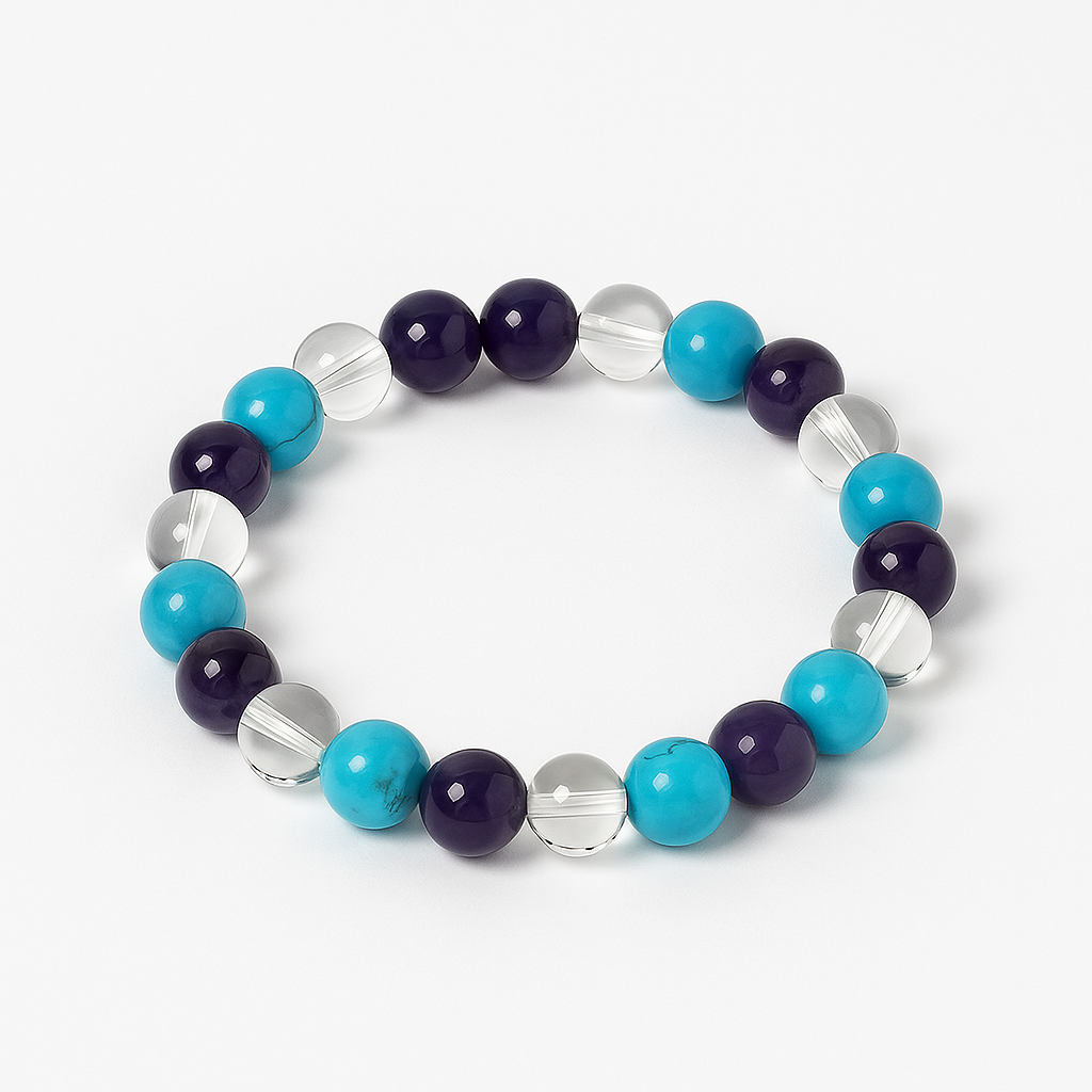 Step into alignment with your highest potential with the CareerBloom Bracelet — a radiant fusion of Amethyst, Clear Quartz, and Turquoise, intentionally curated to support clarity, communication, and confident growth in your career journey.